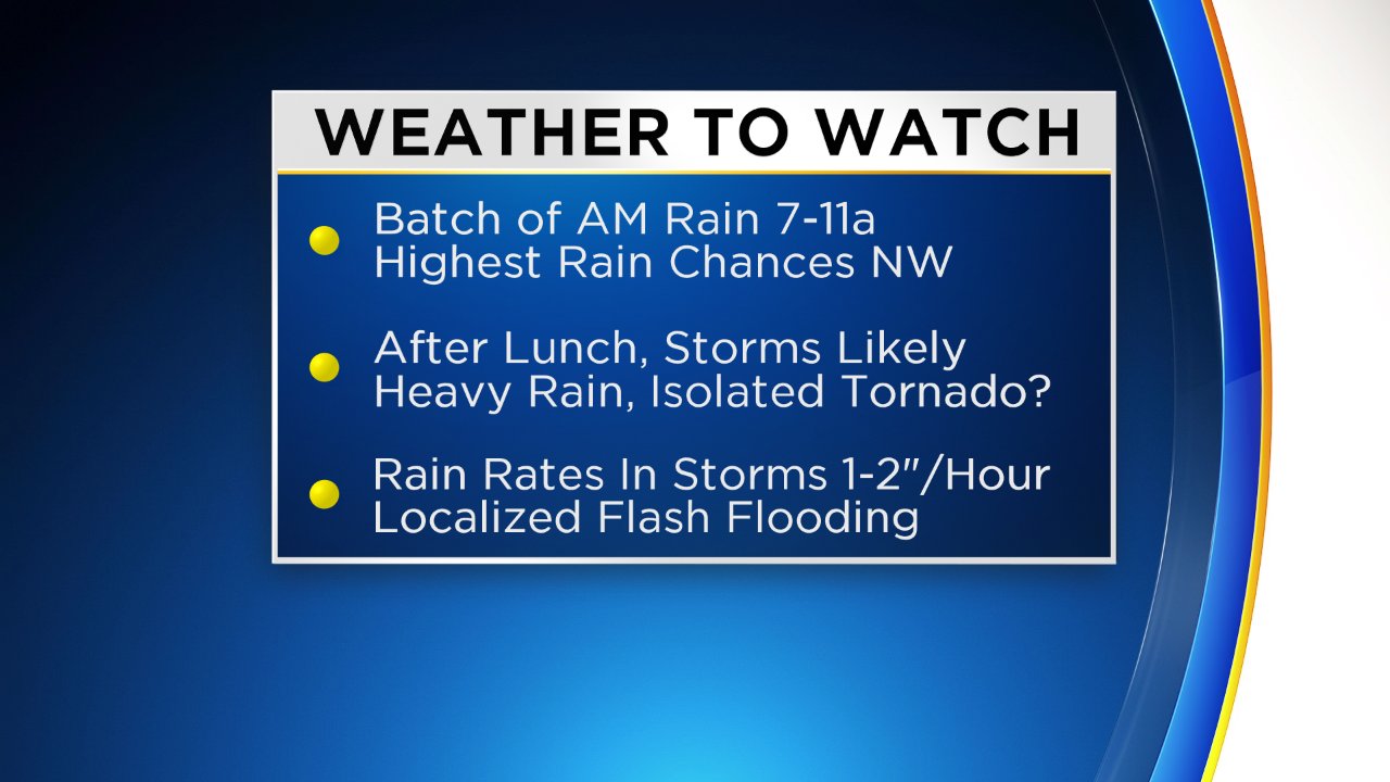 Any thunderstorm threat today will hold off until midday/afternoon. Coverage looks isolated.